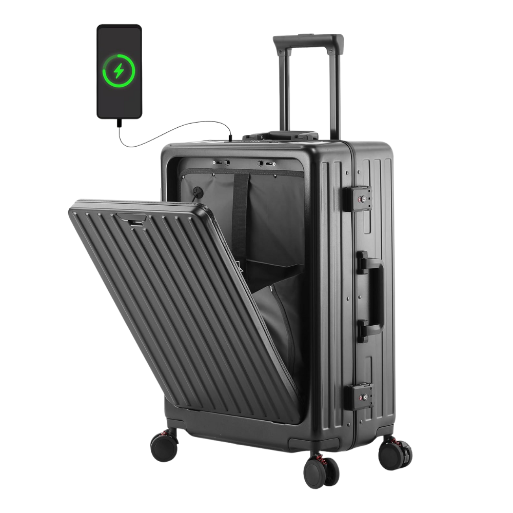 Maleta de viaje diseñada exclusivamente para ejecutivos o viaje de negocios, robusta y con alta protección para tus artículos tecnológicos, documentos y más. Mantente conectado en movimiento con el puerto de carga USB incorporado, perfecto para cargar tus dispositivos electrónicos mientras viajas. Además, el compartimiento para laptop asegura que puedas llevar contigo tu oficina móvil.