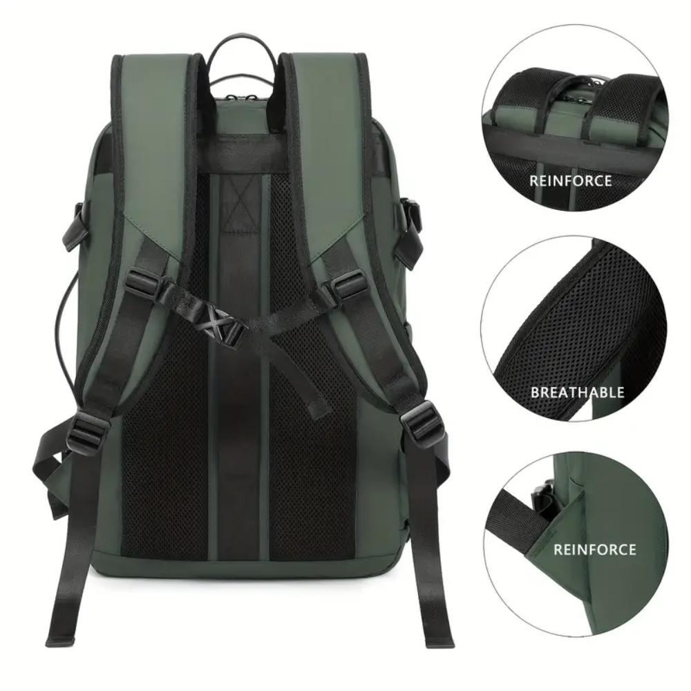 Esta práctica y elegante mochila de viaje está diseñada para quienes buscan funcionalidad y estilo al viajar. Fabricada con resistente tela Oxford, es expandible, cuenta con compartimentos organizados y una funda especial para portátil, ideal tanto para hombres como mujeres. Su diseño incluye doble asa acolchada tipo mochila para mayor comodidad, correas ajustables de compresión y múltiples bolsillos de acceso rápido. Perfecta para viajes de negocios o escapadas de fin de semana.